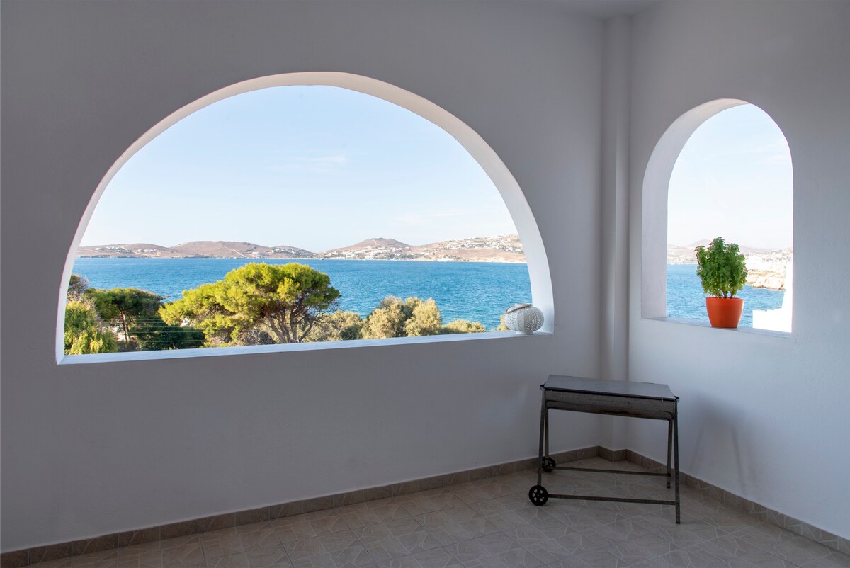 Udobno stanovanje z veliko zasebno verando z odprtim pogledom na morje in sončni zahod. Nahaja se v starem mestu Parikia le 40m. od obale in osrednje plaže. Idealno za sprostitev in ob vseh trgovinah, kavarnah in restavracijah. Pristanišče je oddaljeno 800 metrov/ 0,49 milje (5 minut hoje)