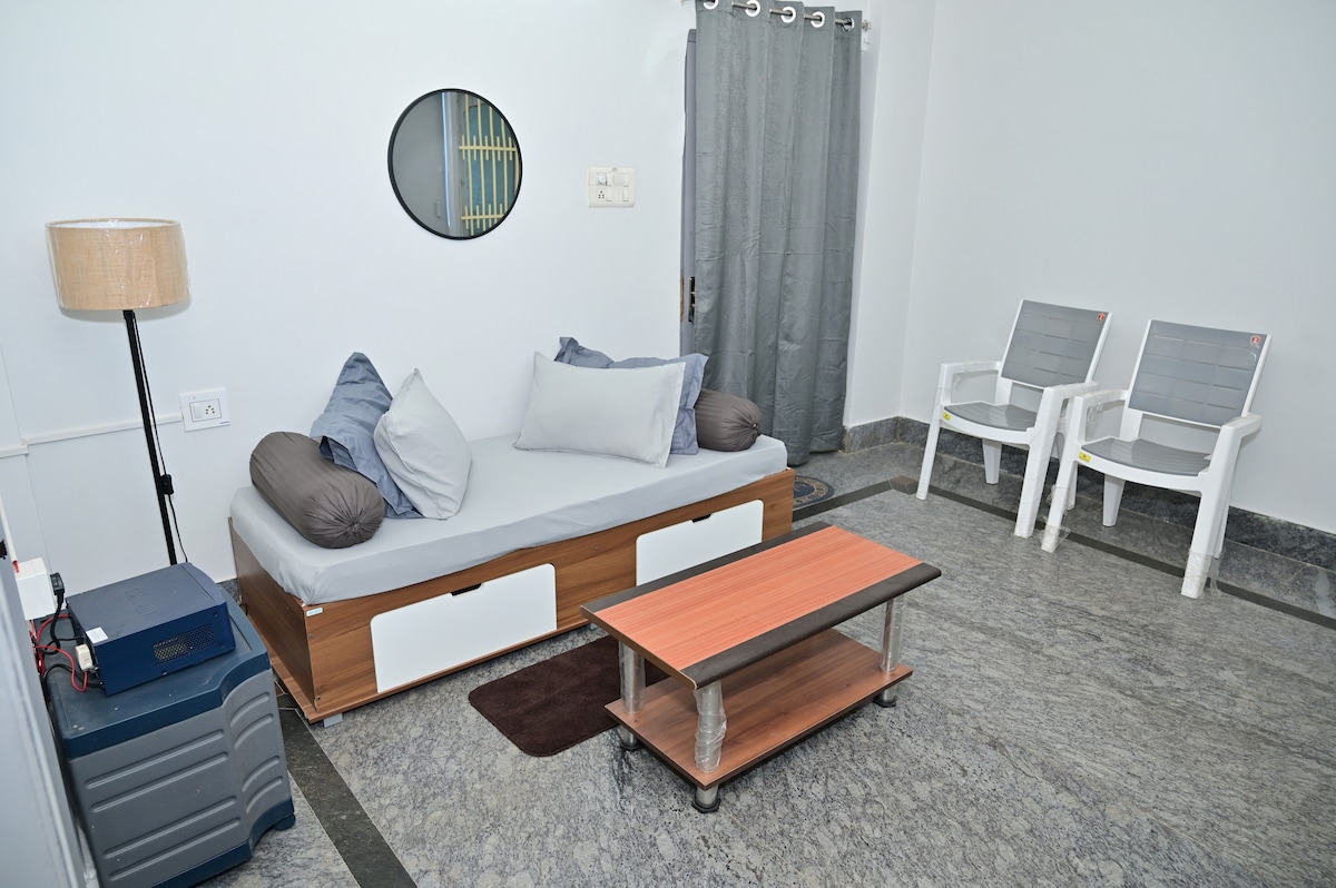 Doživite vrhunsko družinsko bivanje v našem elegantnem prenočišču 1BHK v Puriju. Premišljeno zasnovano za udobje, vključuje prostorno spalnico, eleganten bivalni prostor in popolnoma opremljeno kuhinjo. Nahaja se na varnem, mirnem območju, le nekaj minut od plaže in glavnih templjev (1,5 km od templja Jaggnath, 500 m od templja Loknath) in ponuja popolno mešanico razkošja in domačnosti. Uživajte v prefinjenem in sproščujočem oddihu, prilagojenem družinam.