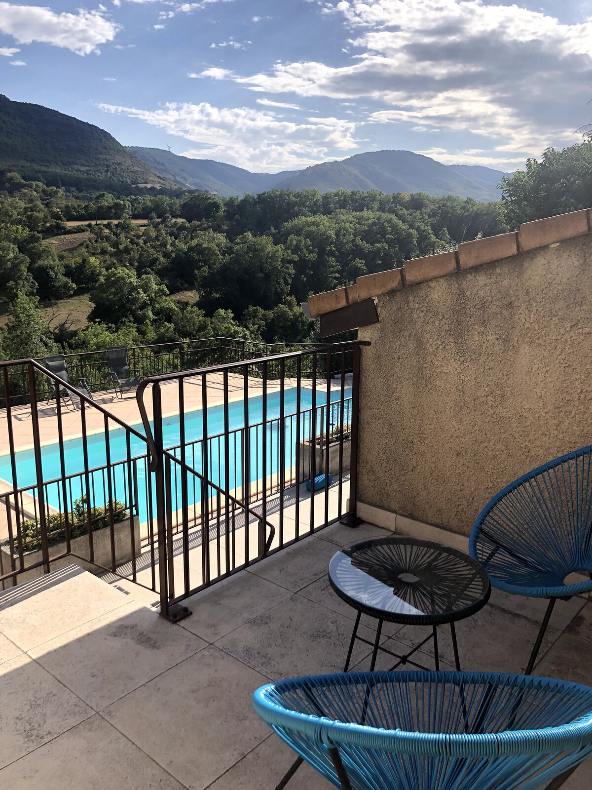 Nekdanji restavrator, ki sem ga pred nekaj leti začel doživetje na Airbnbju, ki ga spodbujajo povratne informacije različnih gostiteljev, sem želel dati na voljo nov del svojega prenočišča, ki je bil pravkar popolnoma prenovljen, Na voljo je ena dnevna soba + ena spalnica, ena kopalnica in terasa. Manj kot 5 minut hoje boste našli različne trgovine. Skupni zasebni bazen je odprt od 10. junija do 10. septembra od 10.00 do 18.00. Hišni ljubljenčki niso dovoljeni