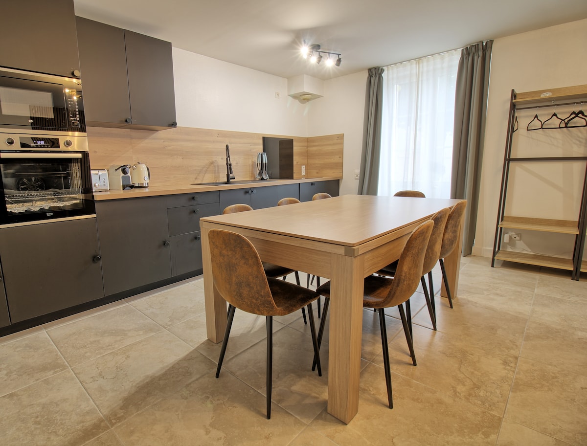 Dobrodošli v »Clos Mylodro«, ki meji na našo stanovanjsko hišo🏡⭐️⭐️⭐️⭐️, ki se nahaja 3 minute od zasebne bolnišnice De Varye in 10 minut vožnje z avtomobilom od Gare de Bourges, v mirnem stanovanjskem območju 🌴 Očarljivo in udobno popolnoma opremljeno stanovanje s posteljnino, ki lahko sprejme 4 osebe 🧑🧑🧒🧒 (+ dojenček👶🏻). Dvojno zasebno parkirišče za avtomobil in tovornjak 🚚🚘 ⚠️ Skupni prostori, ki jih boste uporabljali z drugimi, so bazen, igrišče in vrt.