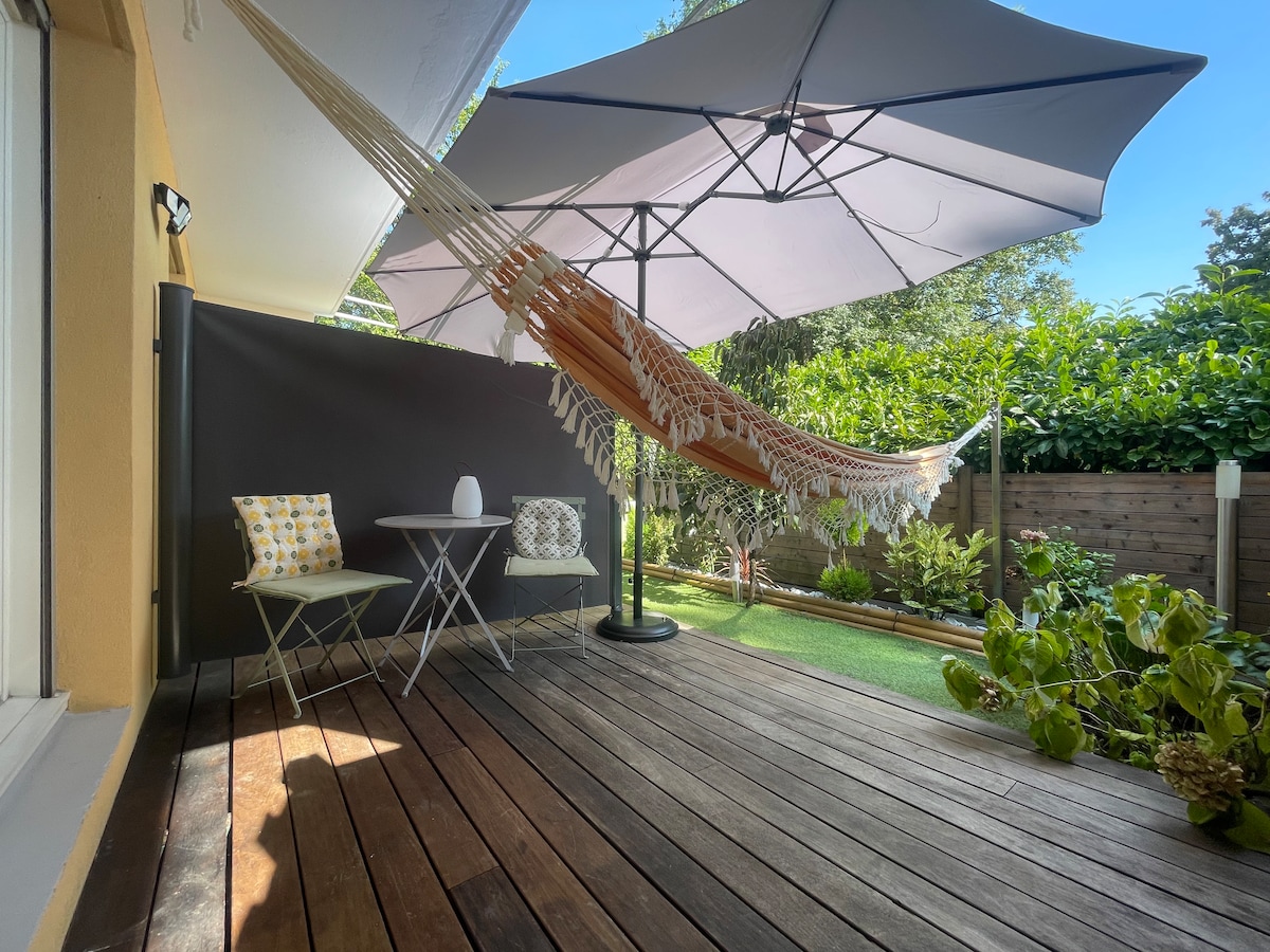 Stanovanje v pritličju velikosti 55 m2 z zasebnim spa centrom. Stanovanje se nahaja v osrčju Grenobla, na dokih, s pogledom na gore. Previdna dekoracija in vrhunska oprema skupaj ustvarjajo popolno vzdušje za nepozabno bivanje v popolni zasebnosti. Stanovanje ima veliko posteljo velikosti 180 x 200 cm, kuhinjo, spa (jacuzzi)