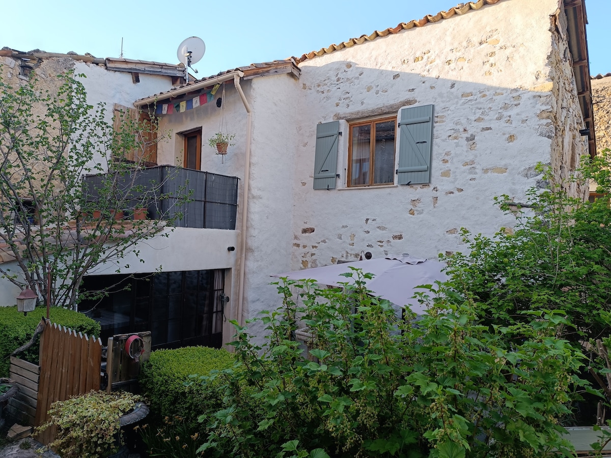 Petit appartement de 22 m2 au premier étage d'une maison de village, avec accès direct à la terrasse privative plein sud, salle d'eau, chambre, petit salon. Attention Kitchenette: impossibilité de faire de la grande cuisine! La rue devant est en pente ! Des activités (incluses) sont proposées - Un accès sur réservation à un terrain aménagé au bord du lac à 5 km est proposé: paddle, vélo, apéros, farniente ... - Yoga en salle ou au bord du lac sur réservation Réservations sur visiteverdon