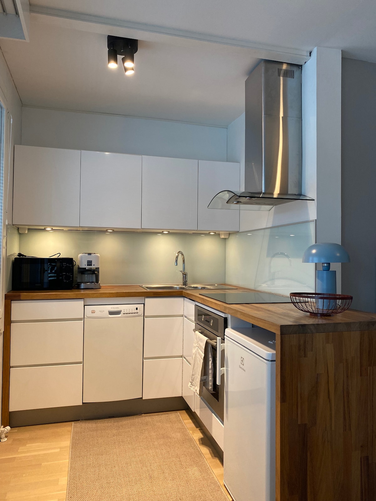 A modern and stylish one-bedroom apartment, located above the Mall of Tripla shopping center. The apartment features a well-equipped kitchen, fast Wi-Fi, laundry facilities, and all the essential amenities to ensure a comfortable stay, whether short or long. Are you visiting Helsinki for business or just a quick getaway? Whatever the reason for your stay, you are warmly welcome to enjoy this apartment—also for longer stays if needed!