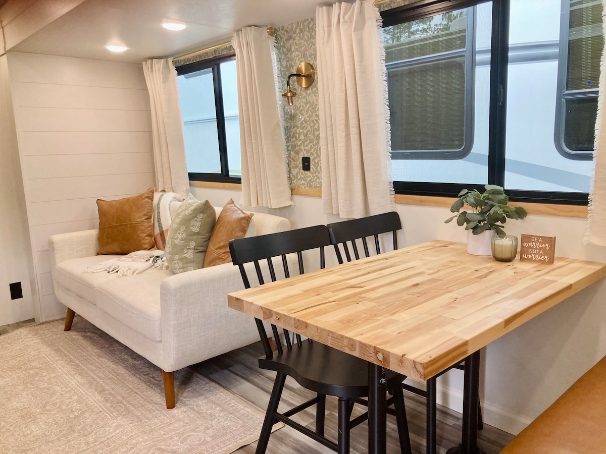 Pripeljite družino v naš retro-šik avtodom, ki je kot nalašč za ustvarjanje spominov! 😊 To čudovito prenočišče na kolesih vključuje: ✨ Ločene spalnice za starše in otroke! ✨ Sprostite se ob gledanju televizije v glavni spalnici ali pa zavrtite televizijo in uživajte v družinskih filmskih večerih v dnevni sobi 🍿 ✨ Ograjeno dvorišče z igriščem, v katerem lahko uživajo najmlajši! 🤸♀️ ✨ Zunanja kuhinja in žar s tendo in sedežno garnituro - kot nalašč za žar 🌮 ✨ Bonus: kuhinjska miza in kavč se spremenita v postelje za večje skupine👫