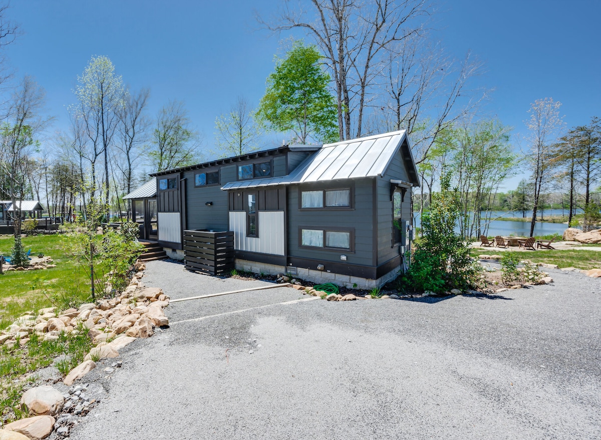 Watercolor House, an elegant lakefront tiny home carefully curated to bring peace & comfort to all who visit. Set on a half-acre treed lot, come enjoy the great outdoors at nearby waterfalls & hiking trails. Bring your boat/kayak. Bass fish in the lake. Roast s'mores by the stone fire-pit & relax in the screened-in porch or open deck. With a welcoming living room, a large TV for movie watching, an electric fireplace for cuddling, 2 private bedrooms & cozy loft space, the whole family can enjoy!