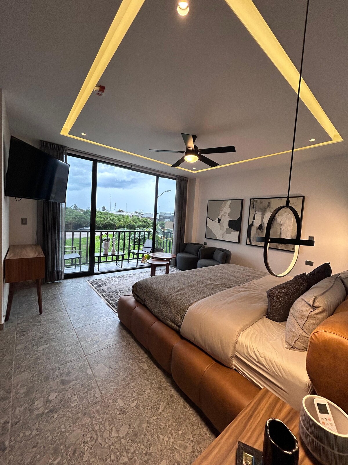 Uživajte v udobnem in popolnoma novem prostoru, ki je idealen za kratkotrajna ali dolgotrajna bivanja. Udobna garsonjera vključuje veliko zakonsko posteljo, TV, kopalnico in kuhinjsko nišo, ki je opremljena za pripravo vaših najljubših jedi. Sprostite se tudi na majhni zasebni terasi s pogledom na mesto. Idealno za popotnike, pare ali tiste, ki iščejo udobje in bližino glavnih znamenitosti Tepika. Rezervirajte zdaj in doživite edinstveno doživetje!