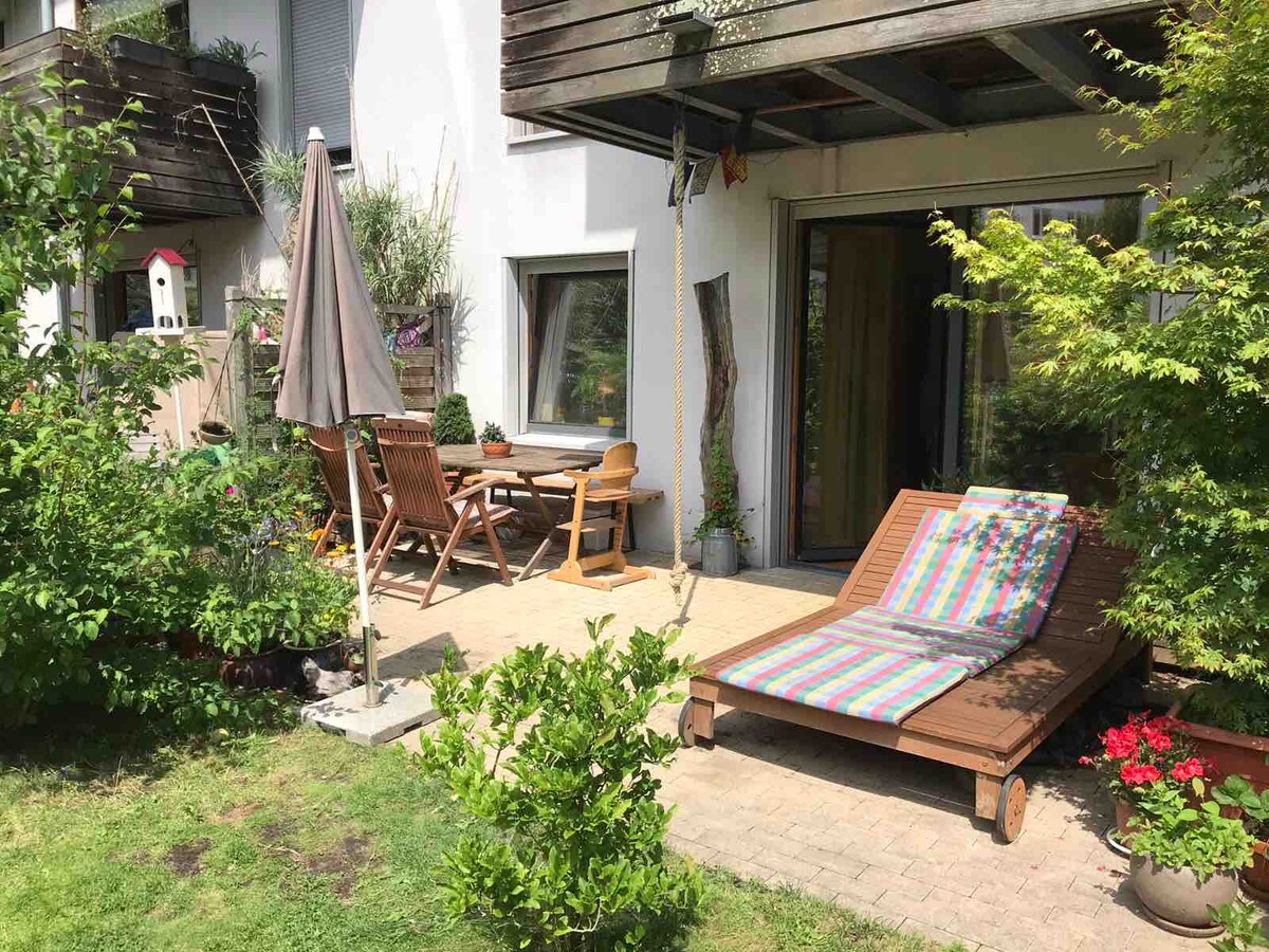 Pritličje ali gradbeno stanovanje (na novo prenovljeno leta 2019) Vaš vrt s pogledom na park in leseno teraso Kamin in savna kopalnica z masažno kadjo Kopalna kad s prho 3 ločene spalnice, 2 ločeni stranišči, 2 ločeni stranišči Stanovanje se nahaja v središču mesta Hamburg-Eimsbüttel na robu Schanzenviertel - sredi življenja, vendar popolnoma mirno in na podeželju. V 110 kvadratnih metrih stanovanja lahko biva dobrih 6 odraslih (v dvojnih posteljah) in 2 otroka.