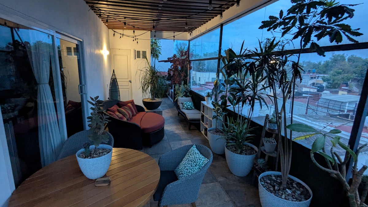 Odkrijte naš udoben Airbnb v soseski Roma Sur v Ciudadu de Méxicu. Ta majhen, vendar miren prostor s tradicionalno in toplo dekoracijo ponuja udobje in pristnost. Poleg tega ima tudi streho za sončenje, opremljeno z ležalniki za popolno sprostitev. Ne zamudite lokalne tržnice, ki se odvija ob sobotah, kjer lahko uživate v različnih svežih in pristnih izdelkih. Nahaja se v bližini vsega in lahko zlahka raziščete živahno kulturo in mestno življenje.