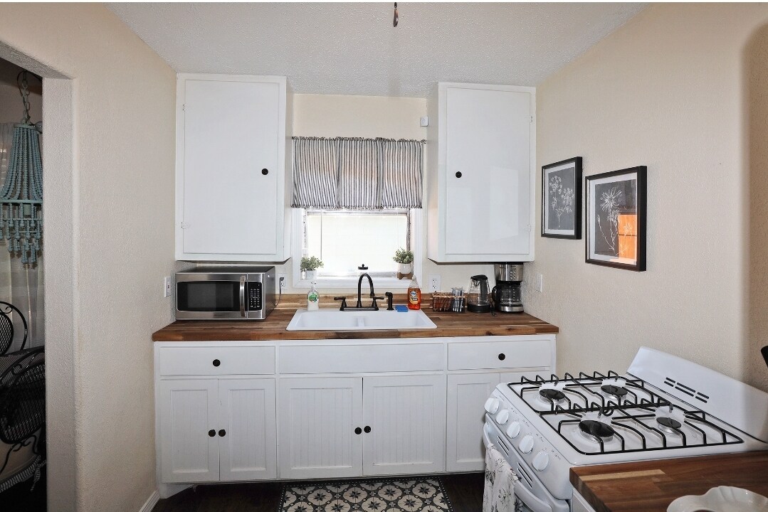 Enjoy this cozy, unique, 575 sqft tranquil getaway. It’s 1 1/2 blocks from Route 66 back at the end of a long, double wide driveway. The start is steep, drive up and down it a little slanted. One bedroom has a queen, and the other a twin bed. Enjoy the sunset on the back deck. A 50 inch smart tv is in the living room. Make your coffee or tea and enjoy the can of cinnamon rolls in the refrigerator ready to bake. Stroll down Route 66, with its many antique shops, bookstores, restaurants, + bars.