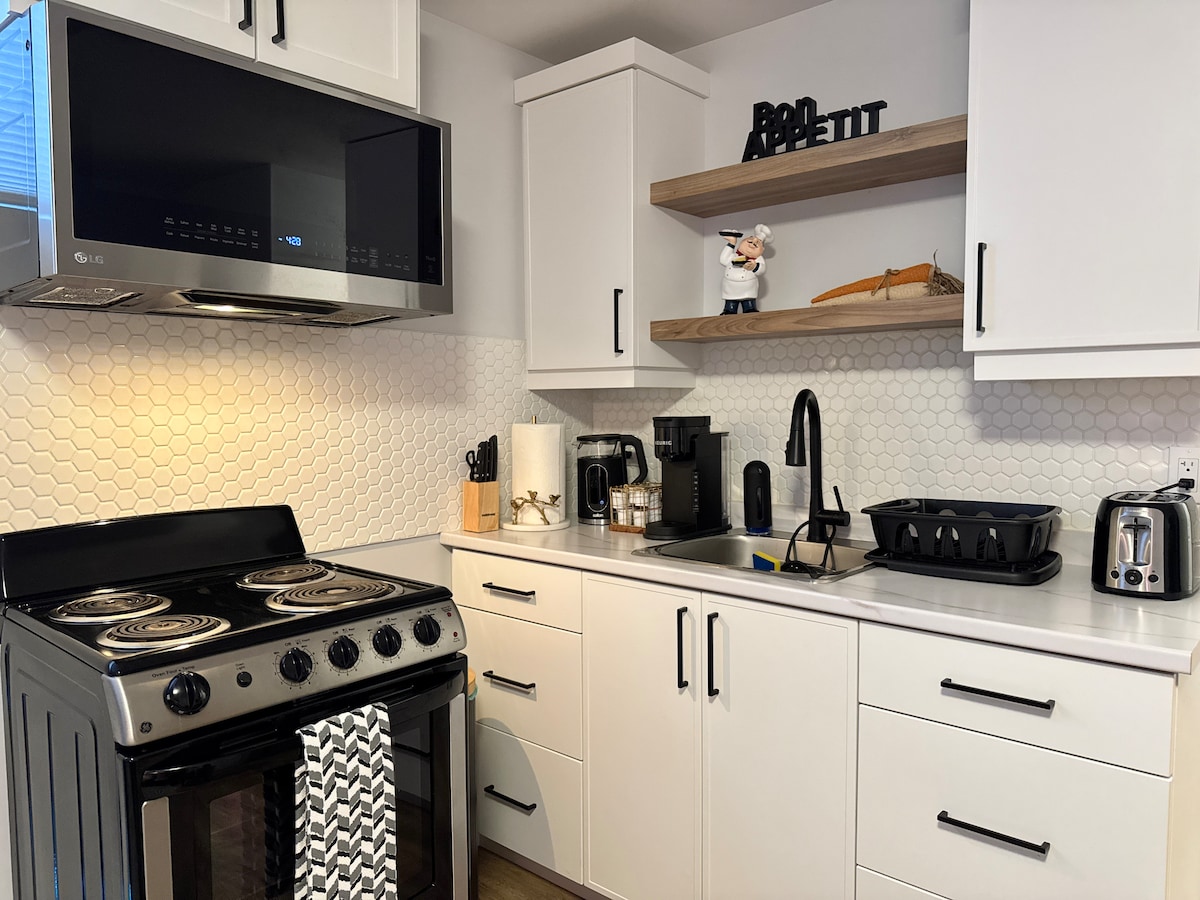 Dobrodošli v našem popolnoma novem stanovanju, ki se nahaja v kleti našega prenočišča v eni najbolj priljubljenih sosesk v Monctonu. Odkrijte ekskluzivni zasebni enosobni prostor z neodvisnim vhodom, sodobno in elegantno kuhinjo, vabljivo dnevno sobo z raztegljivim kavčem, razkošno spalnico in zasebno kopalnico. Cenili boste tudi priročnost pralnice v nastanitvi s pralnim in sušilnim strojem.