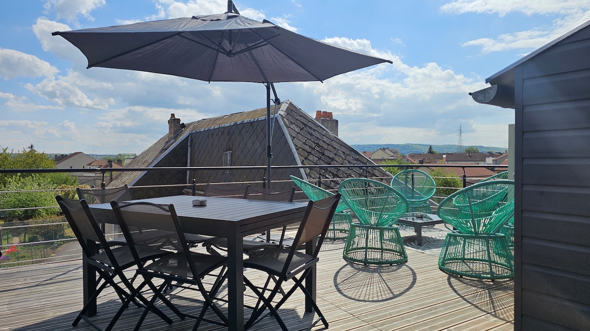 Sodobna in topla tripleksna hiša na idealni lokaciji med Metzem in Luksemburgom, le nekaj minut hoje od nakupovalnega središča Galaxie, živalskega vrta in rekreacijskega območja Amnéville. Idealno za družinske izlete, sproščujoče trenutke ali poslovna potovanja. ✨ Posebnosti – 2 spalnici in 2 kopalnici v ločenih nadstropjih – Velika svetla dnevna soba s pečjo na pelete – Opremljena kuhinja, majhna pisarna in vrt – Posteljnina in zasebno parkirišče