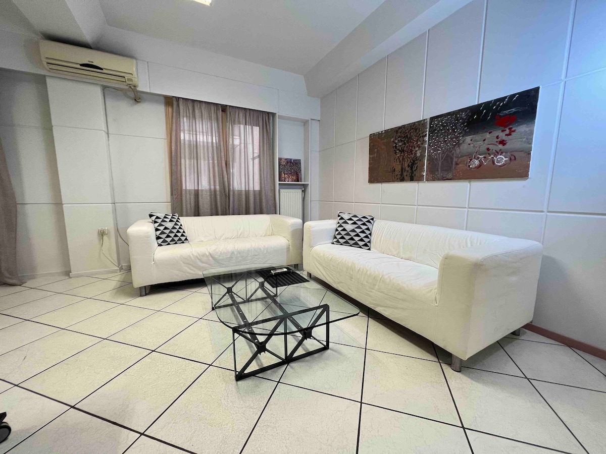 Mestno stanovanje. 1' hoja od linije podzemne železnice 3, ki neposredno povezuje letališče s pristaniščem Pirej Mestno stanovanje 55 m²(obnova november 2023) v sodobnem in prefinjenem slogu sprejema obiskovalce/ popotnike z vsega sveta v vibracije atenskega življenja in najbolj znanih znamenitosti. Odkrijte najbolj znane znamenitosti mesta, kot sta muzej Akropole in Parthenon v 10 minutah s podzemno železnico. Od tu začnite raziskovati Atene!