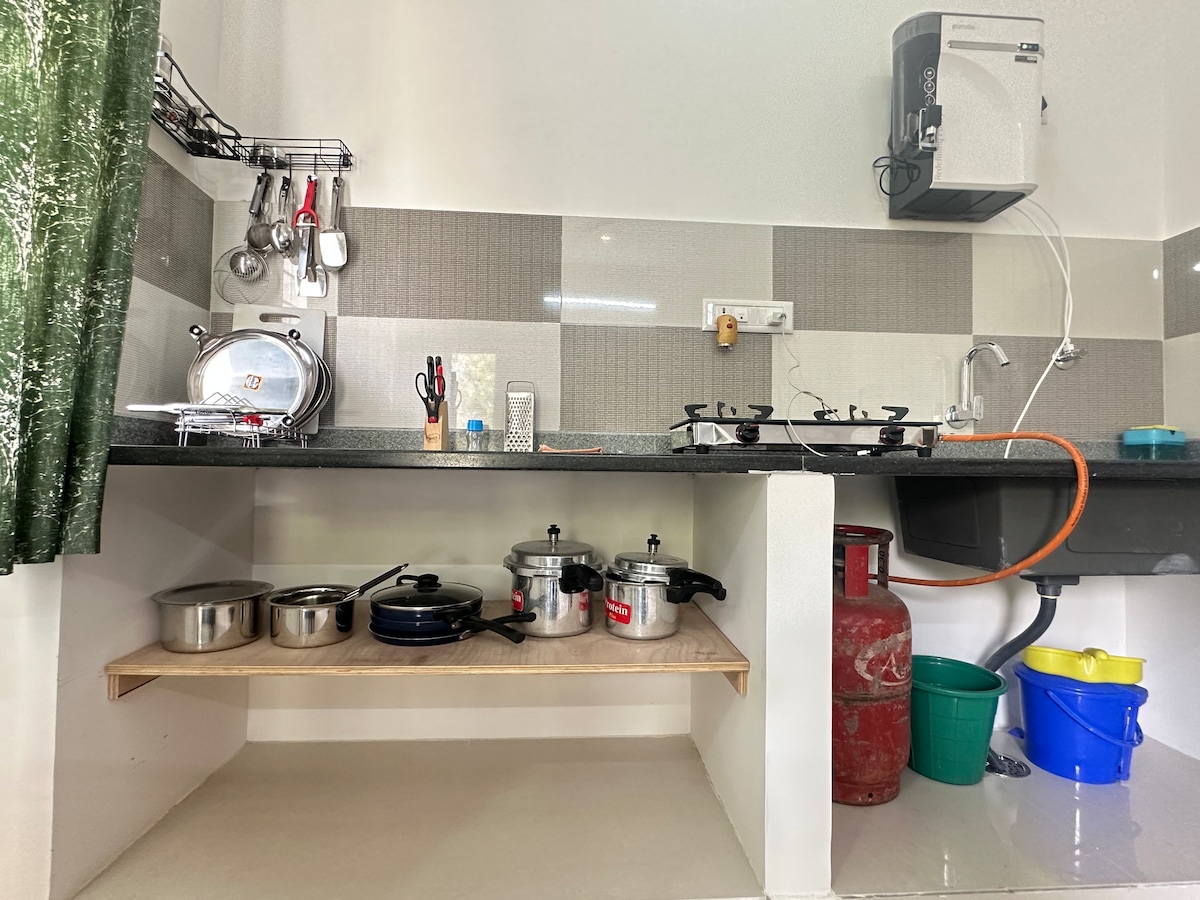 Vstopite v sodoben prostoren dvosobni apartma s 4 spalnicami in 3 kopalnicami, ki vključuje naslanjač, Wi-Fi, 55-palčni televizor, hladilnik, popolnoma opremljeno kuhinjo s plinskim priključkom, mikrovalovno pečico, zračni cvrtnik, žar in jedilnico. Dostop do bazena v klubski hiši za 150 Rs/osebo od 7.30 do 17.30. Posebnosti prenočišča so naslednje: • 🛁 razkošna kopalna kad s kadjo in vročo vodo • 🏠 Dnevno čiščenje in osnovna živila • 🌿 Dva balkona + odprta terasa z osvežujočim zelenim razgledom • 🧺 Pomožni prostor s pralnim strojem za daljše bivanje