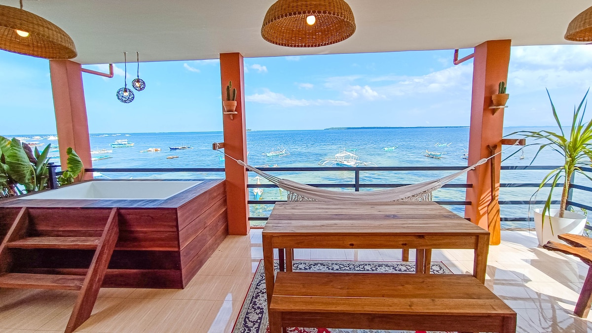 Welcome to Siargao's closest house to the ocean ! Calm, beautiful, you will have access to the whole top floor of this cosy two-storey house facing the ocean. Mexican inspired, we have taylored and crafted all for you to feel magical, surounded by a priceless calm and wonderful environment. Wake up each morning with a breath-taking sunrise view and enjoy your direct access to the sea! Central and perfect for your stay in Siargao. Ground Coffee & Great WiFi. What else would you need to be happy?