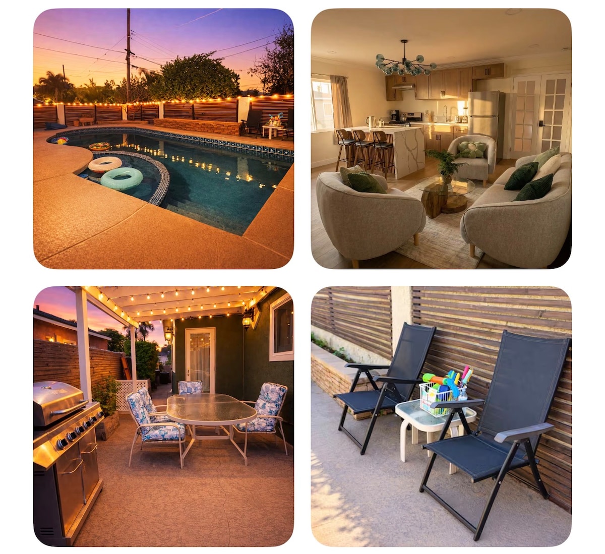 Umetniško počivališče z edinstvenimi artefakti, bujnim vrtom z živahnimi rastlinami in vegetacijo, majhnim ribnikom, zasebnim bazenom in spa, kuriščem in zunanjo kuhinjo. Sprostite se v mirni soseski z dvema senčnima terasama, sodobno zabavo, vključno s televizorji za pretakanje, prostorskim zvokom, majhno mizo za biljard in igralno konzolo Xbox. Idealno za družine, prijatelje, pare ali poslovne popotnike, ki iščejo udobje, zasebnost in nepozabno bivanje v južni Kaliforniji v bližini Disneylanda in glavnih znamenitosti.
