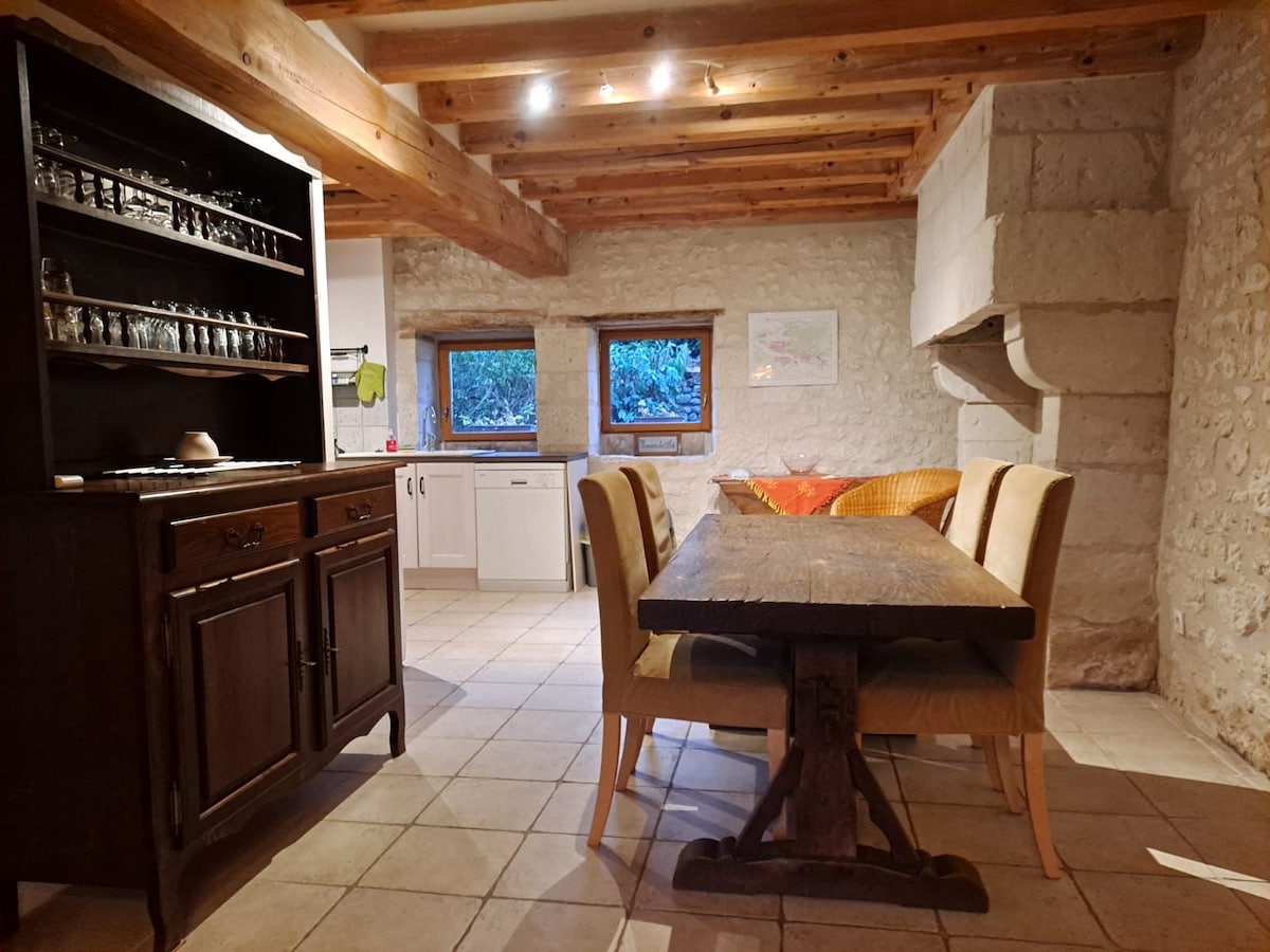 Delna jamska hiša z romantičnim šarmom, ki se nahaja na idealni lokaciji med Tours in Amboise, vključno z: - Dnevna soba Troglo: opremljena kuhinja (zajtrk za bivanje 1 in 2 noči), dnevna soba in bivalni prostor. - Non troglo suite: spalnica in kopalnica, posteljnina Emma 160 cm, prha. - Neomejen zasebni wellness s spa centrom, infrardečo savno in masažno mizo (masaže telesa na zahtevo in neobvezno s profesionalnim strokovnjakom za wellness