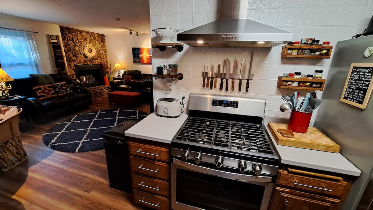 **HOT TUB, Platinum Parking Pass, Fiber Internet, Outdoor entertainment area, Fire Pit, Dog Friendly and Located 2 miles from the chair lifts and bike park** Guest Apartment available in beautiful Chalet style home with amazing views. The two bedroom apartment with a kitchenette is available on the bottom floor of the home with separate access from outside and private parking. This apartment is private space separate from main home with private outside entrance. #frnkachalet