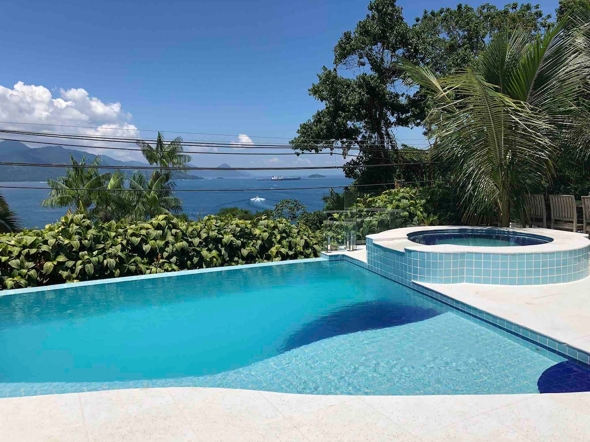 Casa entre Angra dos Reis e Parati, condomínio fechado , segurança 24h, praia a 100 metros com acesso por bondinho, queda dágua, garagem para 4 veículos, 2 pavimentos. 1piso: salão, varanda com vista para o mar, lavabo, cozinha, área de serviço, quartos e banheiro de empregada. 2º piso: 3 quartos, sendo 1 suite, 2 com ar condicionado, sendo 2 com vista para o mar, 2 banheiros . Área externa: varandão coberto , jardim,piscina churrasqueira coberta, 1 suíte independente com barulho da cachoeira.