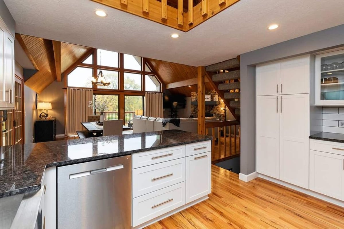 Welcome to The Lodge on 3rd - a massive 8000 sq ft Barndominum. Nestled in the heart of Des Moines, Iowa, this stunning retreat offers the perfect blend of rustic charm and modern elegance. With 4 spacious bedrooms and a large loft, there is plenty of room for you and your guests to unwind in style. This property is next door to Luxury Living on Third. airbnb.com/h/luxurylivingonthird These combined properties are ideal for family reunions, etc. ***$200 Pet Fee***