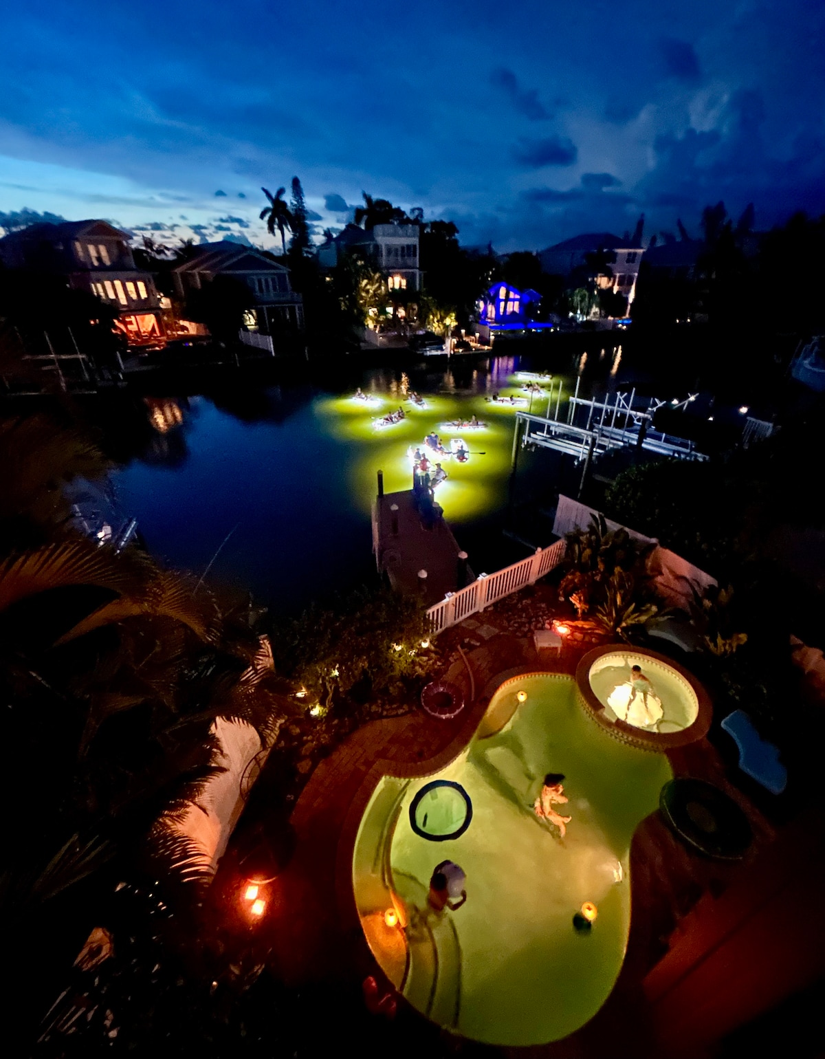 Ogrevan bazen, dvigalo, ob vodi, kurišče, pomol