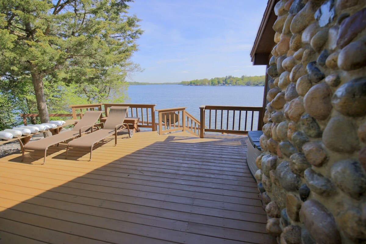 Sprostite se in pustite, da se življenje nekoliko upočasni v Crafted Cottage z NOVO MASAŽNO KADJO s pogledom na jezero. Prenovljeno prenočišče na mirnem 777 hektarjev velikem Maple Lakeu. Uživajte v razgledu na vodo iz družinske sobe skozi okna od tal do stropa. Igrajte igre, kuhajte svoje najljubše obroke v popolni kuhinji ali pa si privoščite film na pametnem televizorju. Velika dnevna soba za druženje. Zabava v tej udobni koči skozi vse leto. Obiščite lokalno pivovarno ali vinski bar in najboljša kava v mestu je tik ob cesti!