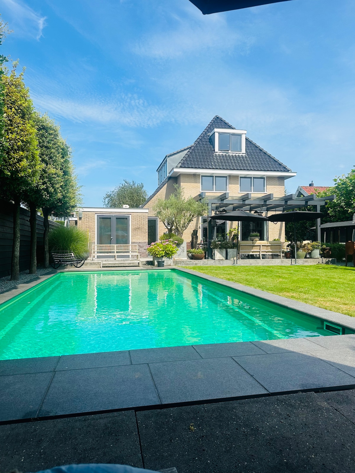 Velika vila z velikim bazenom velik vrt zelo blizu Amsterdama in Zaanse Schans...... sodobna hiša z veliko kuhinjo en velik vrt v bližini naravnega parka "het Twiske". Z avtobusom je 20 minut od Central Station Amsterdam sl s kolesom približno 30 minut do centra mesta Amsterdama. Prav tako približno 25 minut do Volendam z avtom.... 3 brezplačna parkirna mesta pred hišo in telovadnico v vrtni hiši. Oostzaan je Lepa majhna vas s supermarketom in trgovinami na peš razdalji.