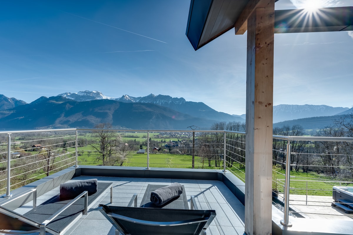 VENEZ CHEZ VOUS vous propose la VILLA BAMBOU sur les Hauteurs de Lathuile– Panorama exceptionnel et Beauté naturelle. Profitez de véritable havre de paix pour vous ressourcer dans une villa de 250m² avec une vue exceptionnelle sur le lac et les montagnes environnantes avec Piscine et Jacuzzi. Vous profiterez des points d'intérêt qu'offre notre région : piste cyclable à 2 km pour faire le tour du lac, plage et base nautique à 5min, Annecy à 19km, Golf de Giez et Talloires à 7 et 12Km.