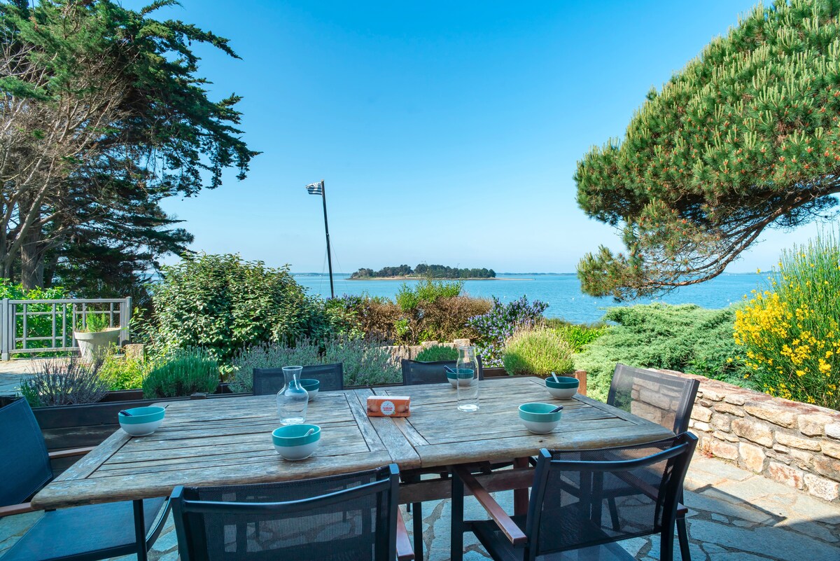 Dobrodošli v vili »Nebeška vrata«, ki se nahaja na polotoku Rhuys. Ta vila v vodi vam ponuja panoramski in izjemen razgled na Morbihanski zaliv: pogled na I name} le aux Moines in zasebni otok. To edinstveno in mirno bivališče je sestavljeno iz velike hiše, zasebnega parkirišča, več teras in velikega vrta z zasebnim dostopom do morja in plaže. Kot nalašč za vaše dogodke, trenutke, družine ali prijatelje. Veselimo se, da vas bomo lahko sprejeli, Lisa
