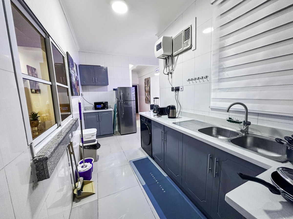 Dobrodošli v Elmstead Luxury Aprt , vašem elegantnem prenočišču v Lekki Ikoti. To zatočišče 2BR/2BA ponuja udobje klimatske naprave, 65-palčni televizor v dnevni sobi, 43-palčni televizor v spalnicah, brezplačen stabilen neomejen Wi-Fi in non stop napajanje z inverterjem in sončno energijo. Uživajte v samostojnem vstopu s pametno ključavnico, brezplačnem parkiranju, pralnem stroju v enoti in otroškem odskočnem gradu. 1 Brezplačno čiščenje za bivanja, daljša od 5 do 6 nočitev. Blizu ohranitvenega centra Lekki, mega Chicken, Blackbell in Blemco, ki je kot nalašč za samostojne popotnike, poslovne goste, družine ali daljše bivanje