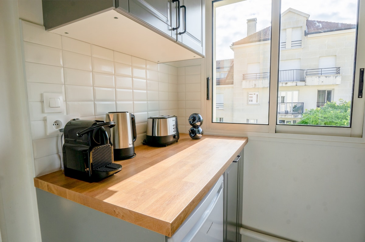 Completely renovated, modern and warm 25m² apartment located in the heart of Antony downtown. Quiet on the courtyard side with balcony to enjoy an outdoor space, it is on the 3rd floor with elevator of a secure luxury residence. Perfectly arranged, it offers all the necessary comfort for your tourist or business stays at the gates of Paris. Shops and public transport are very close with the RER B Antony station less than 5 minutes on foot (350 meters).