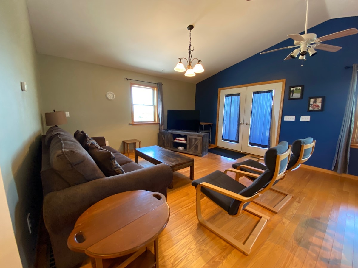 (1 nočitev je dobrodošla! Cena je prilagojena stroškom čiščenja – pošljite mi sporočilo.) Pobegnite v našo kmečko hišo! S popolnoma ograjenim dvoriščem, ognjiščem in žarom je kot nalašč za zabavo na prostem. Sprostite se v 4-sezonski masažni kadi in uživajte v vsem udobju doma z vsem, kar potrebujete za prijetno bivanje. Le 5 minut do čudovitega jezera Torch in reke Rapid ter očarljivih trgovin v središču Aldena. To udobno prenočišče je idealno za miren in priročen oddih, ki čudovito združuje sprostitev in pustolovščino.