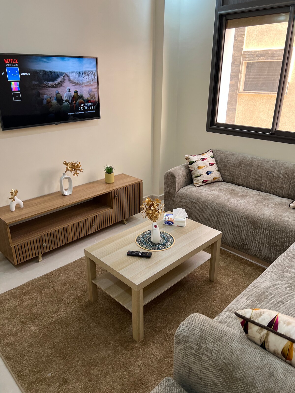 Doživite preprostost in priročnost v našem stanovanju v bližini plaž. To novo, prostorno in svetlo dvosobno stanovanje ter 74-metrska dnevna soba ima sodobno in minimalistično zasnovo, kar vam zagotavlja maksimalno prijetno bivanje. Nahaja se v mirnem predelu, v varni rezidenci srednjega razreda, le 5 minut od marine Agadir in 10 minut od Taghazouta. Najbližja plaža je oddaljena le 400 metrov, dostopna peš ali z avtomobilom.