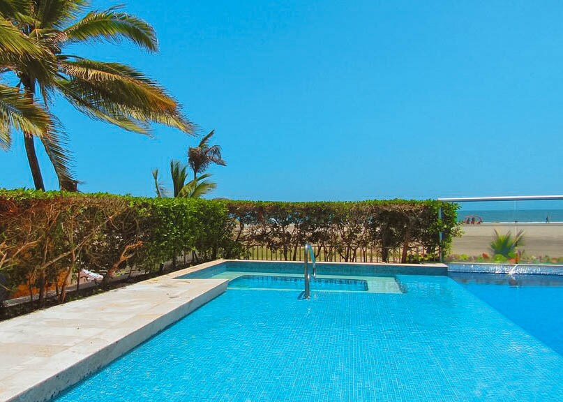 Exclusive apartment in a beachfront building with direct access to the sand. Just 7 minutes from Cartagena’s historic center, perfect for enjoying the Caribbean. Bedroom with a Queen bed + sofa bed (180x110 cm) in the living room 🛁 2 full bathrooms 🌅 Private balcony with hammock 🏊 2 pools (one beachfront), jacuzzi, and sauna 💪 Gym, children's area, and private parking 📶 300 Mbps Wi-Fi – ideal for remote work 🍽️ Close to restaurants, bars, and supermarkets Baby crib available upon request