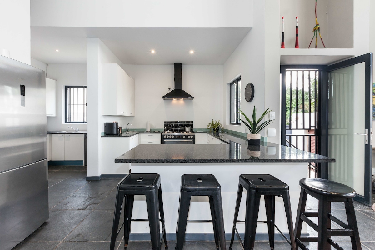 Our home is a canvas of tasteful decoration, adorned with unique furniture pieces that infuse the space with character and charm. The enchanting outdoor space is a haven for al fresco dining and relaxation by the sparkling pool. Only a 1-minute stroll away, you'll find yourself on the vibrant 4th Avenue – Parkhurst's beating heart. Indulge in the best fine dining and explore art galleries. Power supply is uninterrupted. Child-friendly, and with a dedicated workspace for business travelers.