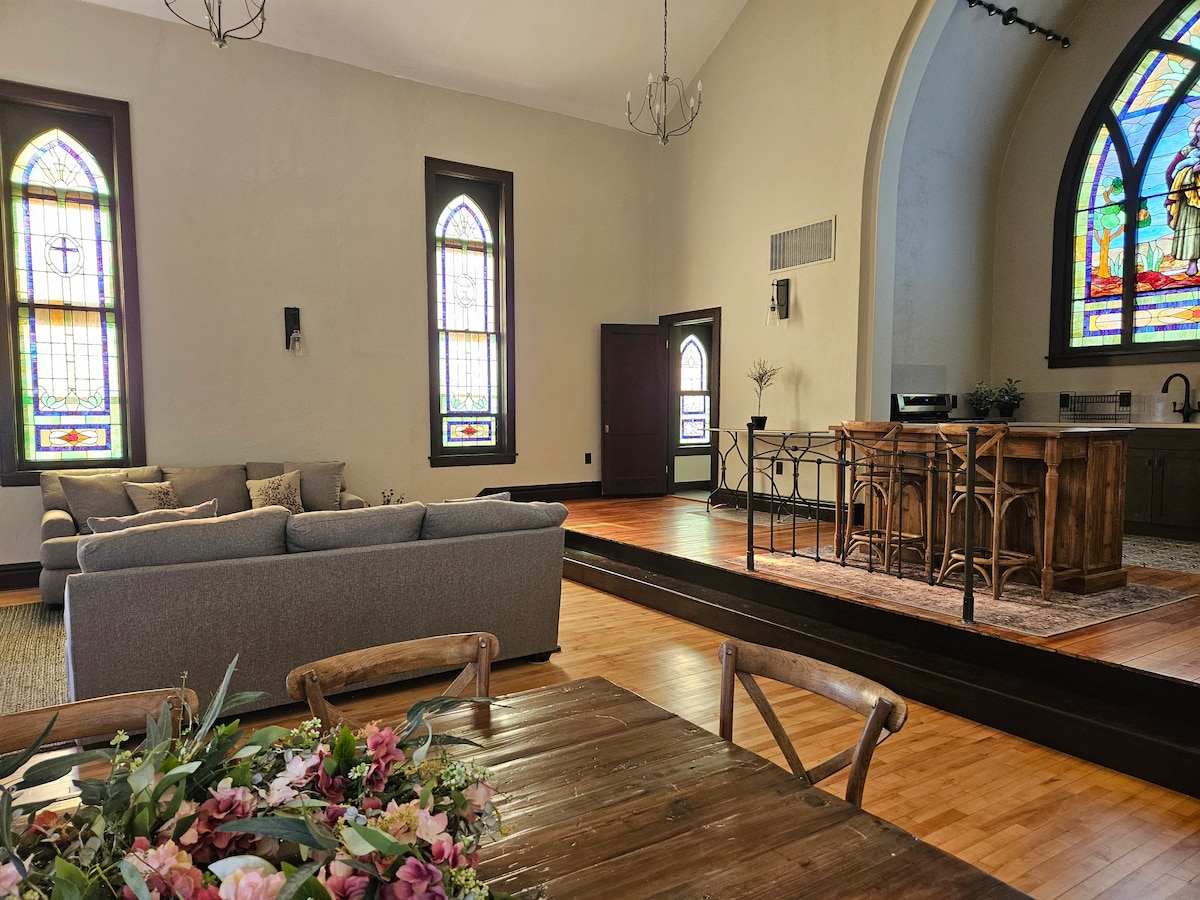 Ja, to je cerkev. Ne, ni dolgočasno. Nekdanje svetišče je bilo preoblikovano v zabaven in nepozaben prostor za počitek po dolgih dneh in poznih nočeh. Nahajate se v Danvillu v Virginiji, le nekaj minut stran od igralnice Caesars, dirkališča Virginia International Raceway in lokalnih barov. Ko se vrnete domov, se lahko sprostite, se glasno smejite in uživate v bivanju z resnično osebnostjo. Idealno za dirkaške vikende, obiske igralnic in skupine, ki imajo rade nekoliko nekonvencionalne izlete. 100 % prihodkov od Airbnbja je namenjenih tekočim obnovitvenim delom.
