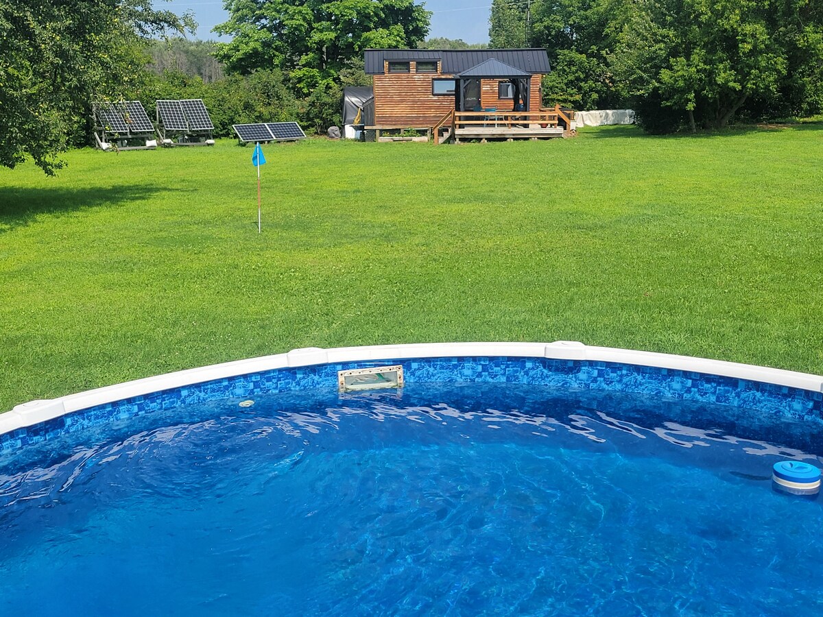 Popolnoma izven omrežja, sončno napajanje z rezervnim generatorjem. Sončna energija lahko napaja toplo in hladno tekočo vodo, notranjost prhe, hladilnika, mikrovalovne pečice, televizije (omejeni kanali), stereo in indukcijski štedilnik. Stranišče za kompostiranje, v zaprtih prostorih. Namenski žar s petimi gorilniki. Popoln dostop do naravnih poti na lokaciji in igrišča za golf z 9 luknjami (luknje 50-200yds). Na voljo sta tako desni kot levi klubi in žogice. Ognjišče (nekaj lesa je vključeno, majhen strošek za doplačilo). Delite nadzemni bazen z lastniki.