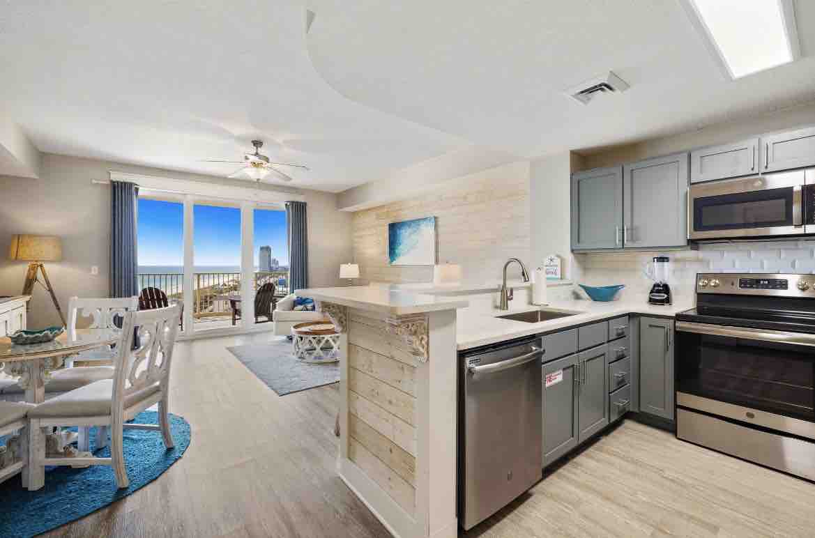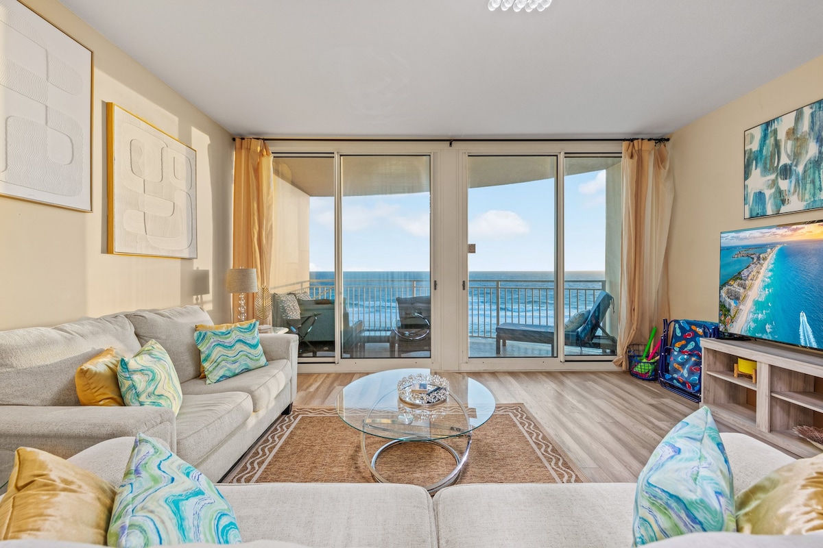 To kotno stanovanje v 7. nadstropju letovišča Tidewater Beach Resort ponuja osupljiv panoramski razgled na neskončno obalo smaragdne zalivske obale. Z zasebnega balkona ali udobja kavča v dnevni sobi ali jedilne mize uživajte v osupljivih sončnih zahodih nad oceanom in bleščečih mestnih lučeh ponoči. Letovišče se ponaša z neverjetno opremo, vključno z dvema bazenoma v slogu lagune, ogrevanim notranjim bazenom, masažnimi kadmi, najsodobnejšim fitnes centrom z rimskim spa centrom, kinom in dostopom do zasebne plaže.