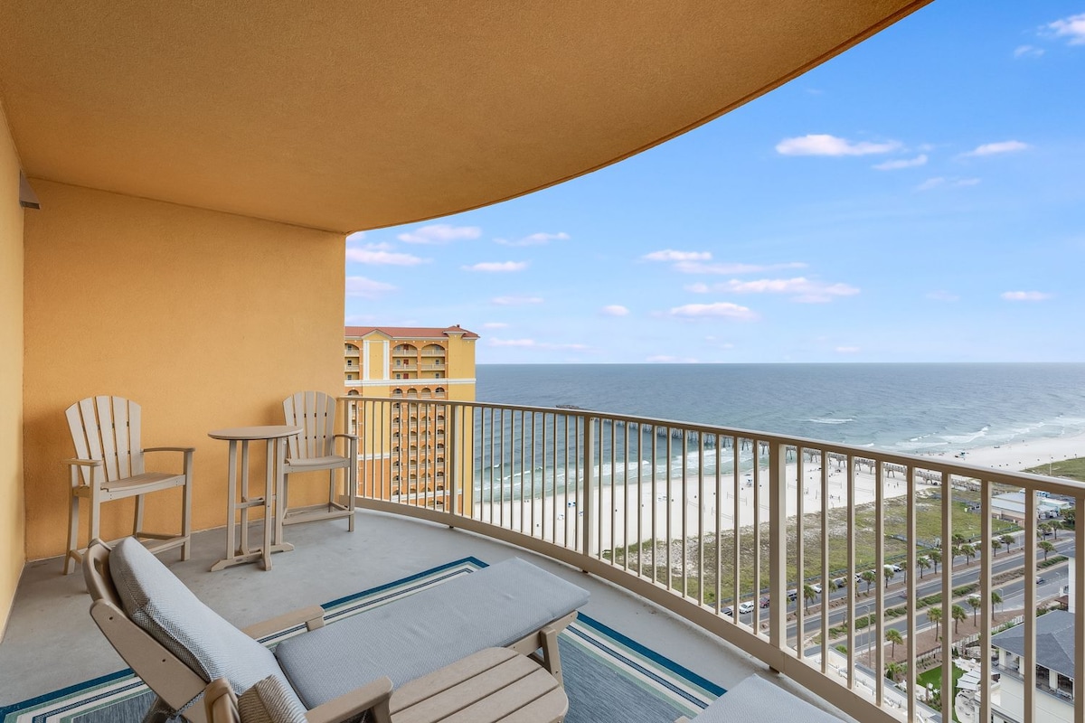 Beach Haven PCB | 1 spalnica/2 kopalnici, 8. nadstropje, stanovanje z osupljivim razgledom na zaliv! BREZPLAČNA oprema za plažo (2 stola + 1 senčnik, marec–oktober 2026) Predstavljajte si, da se sproščate na balkonu, pljuskate v bazenu ali pečete večerjo na žaru po sončnem zahodu. Izjemno hiter Wi-Fi, 2 pametni televiziji, pralni/sušilni stroj, dobro opremljena kuhinja in električni žar na balkonu. Letoviška masažna kad, ognjišče in dobra atmosfera so vključeni. Zahtevana je vstopnica za letovišče v višini 50 $ (0–1 avtomobil/bivanje), 100 $ za 2 osebi, ki se plača ločeno. Hitro rezervirajte ob koncu tedna, vendar imamo odlične cene za delo med tednom.