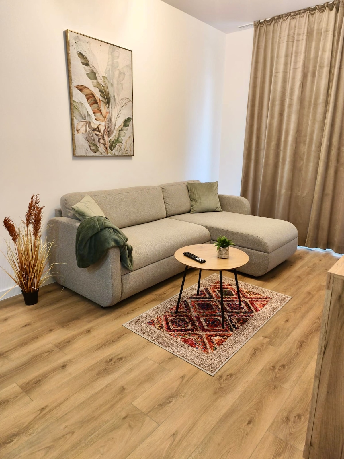 Dobrodošli v našem novem očarljivem stanovanju, ki se nahaja v »najmlajšem« delu Brašova. V celoti opremljena spalnica z veliko zakonsko posteljo in udobnim sedežem ob oknu, kopalnica v retro slogu s prho, dnevna soba z barom, kaminom, udobnim kavčem in popolnoma opremljeno kuhinjo v odprtem prostoru. Stanovanje je oddaljeno 5 minut hoje do nakupovalnega središča Coresi in 20 minut z avtobusom do starega mestnega jedra (oddaljeno 4 km). Železniška postaja je oddaljena 15 minut vožnje z avtobusom (2 km).