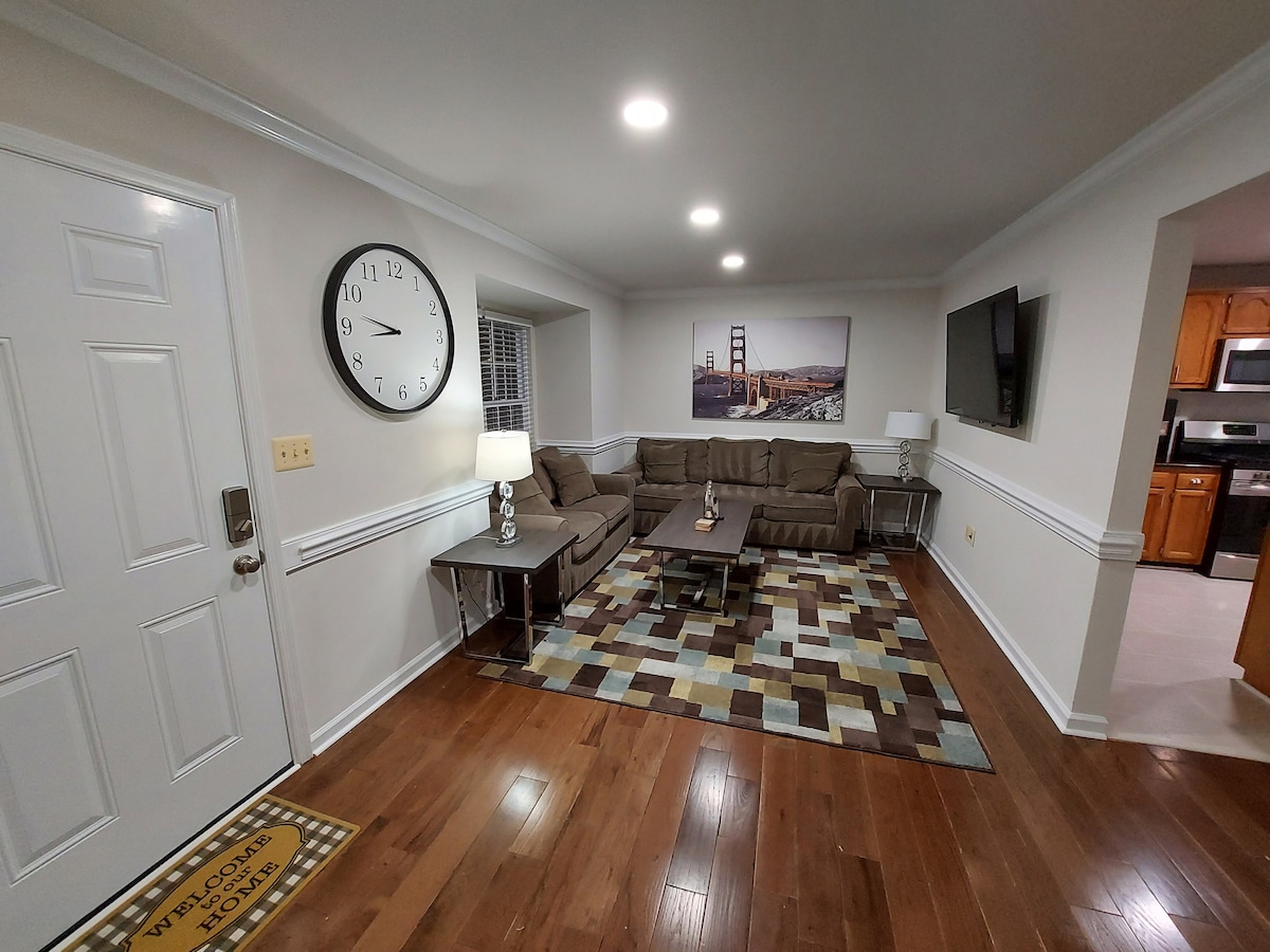 Neverjetno in lepo urejena vrstna hiša v končni enoti za sprejem več družinskih članov in prijateljev. Zabavajte se v tem elegantnem bivališču. Neokrnjena soseska v bližini I-95 in Rt 1 milje do Quantica , 30 milj do DC, MGM National Harbor in 14 milj do središča Fredericksburga. 4 spalnice, 3,5 kopalnice - dnevna soba, soba za rekreacijo, jedilnica in terasa. Dva prostora za sedenje s 65-palčnimi pametnimi televizorji. Ves dan prinesite pretočne račune, kabelsko televizijo in pretočno predvajanje z brezplačnim hitrim brezžičnim internetom Verizon.