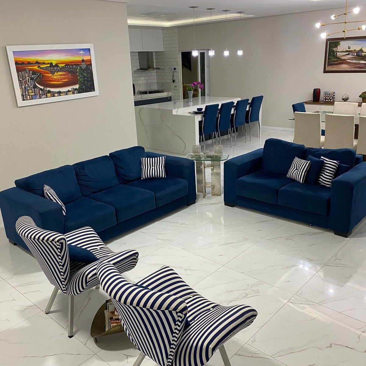 Divirta-se com toda a família neste lugar cheio de estilo. Casa duplex com duas suítes completas no primeiro andar e três suítes completas no segundo andar. Acesso do quintal para o deck e do deck para a casa com escadas e rampas. Os dois andares com varandas e armadores para redes. No segundo andar conta com um Lounge com bancos em alvenaria com estofamento, uma lareira, alimentada por Etanol e espaço com mesa para festinhas.