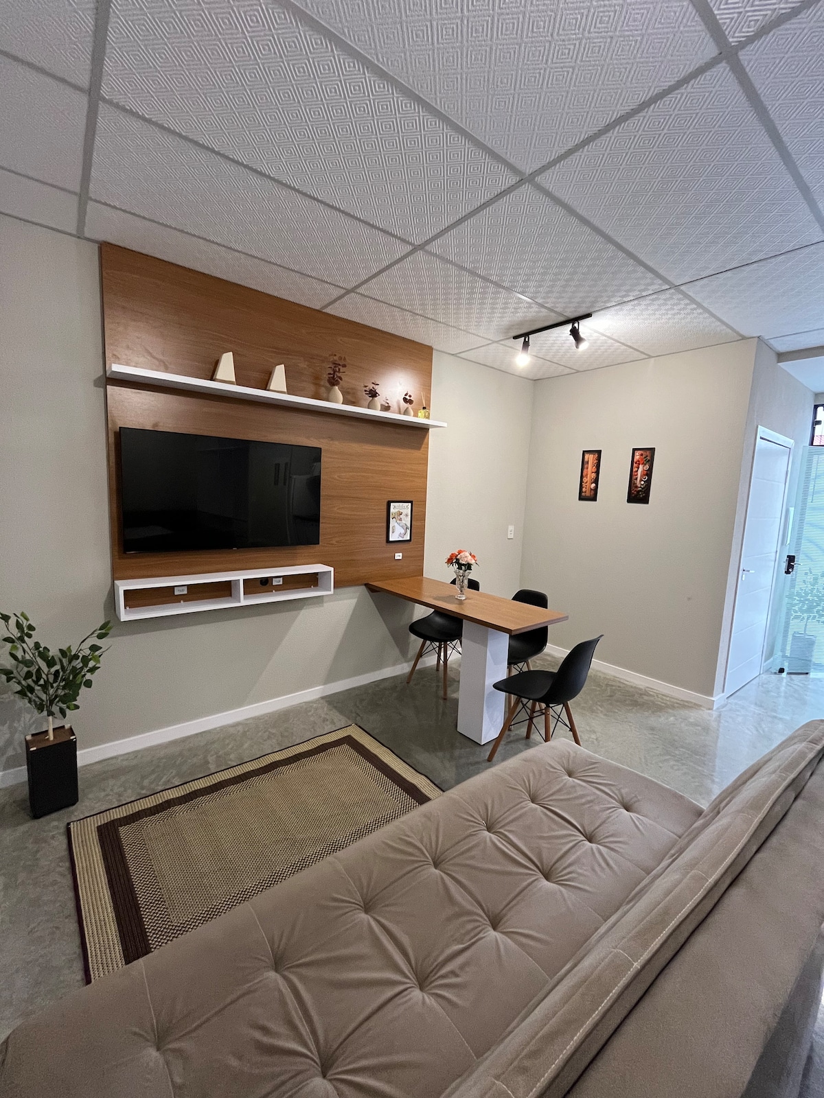 A lazer ou a trabalho, próximo a bares, restaurantes, shopping , farmácia e supermercado! Loft moderno, totalmente equipado, com internet rápida , ar condicionado, fogão e forno elétrico, geladeira , microondas, liquidificador, cafeteira, chaleira elétrica , secador de cabelo ,ducha higiênica ,lavadora e secadora de roupas, varal de teto e de parede. Dormitório com cama queen e armários, smart tv em base giratória para atender a sala e o quarto. Sacada com sol da manhã e garagem privativa !