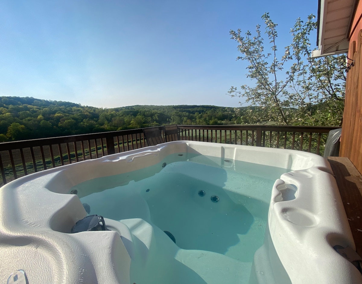 Pobegnite v rustikalno prenočišče v koči, ki se nahaja na 15 hektarjih s čudovitim razgledom na gore v osrčju neskončnih gora. Le 5 milj od smučišča Elk Mountain in priročno v bližini trgovin NEP do poti, državnega parka Lackawanna in drugih naravnih znamenitosti, kot je park Salt Springs (35 min stran). Uživajte v bližini nakupovanja in večerje v Cliffordu, Clarks Summit in območju Scranton.