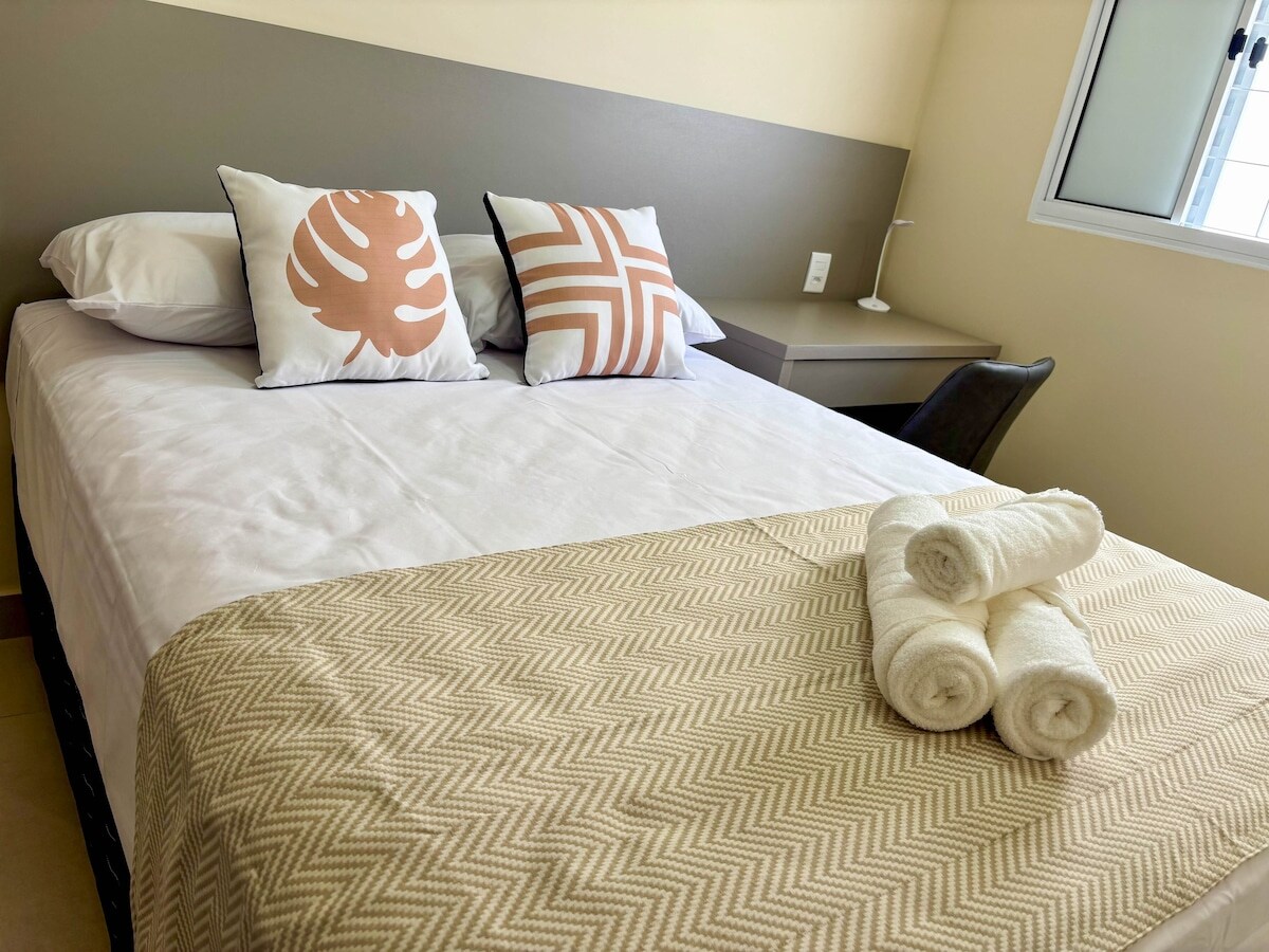 Seja bem-vindo • Portaria 24hs. • Garagem coberta para 1 carro. • Wifi 300mbps. • Ótimo espaço para home office. • Enxoval: Oferecemos quantidade de enxoval suficiente para o número de pessoas descrita na reserva. Caso deseje cobertor adicional será cobrado taxa extra mediante consulta; • Duas Smart Tv, Ar condicionado, utensílios básicos de cozinha. • Mantimentos: filtro de água fria e natural, café, sal e açúcar. • BANHEIRO: Papel higiênico, Shampoo e Sabonete líquido.