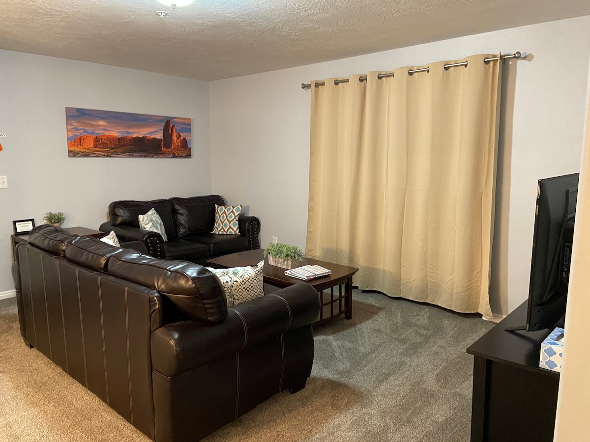 Stay in our spacious, top floor home for your getaway in Moab. This condo is great for families, friends, large groups, weekend warriors, hikers, mountain bikers, rock climbers, river rafters, sky divers, off-roaders, hunters, bird watchers. Needless to say, we have the perfect base camp for your Moab Adventure! Pool Open (10AM-10PM) March 15th - October 15th Hot Tub Open Year Round (10AM-10PM)