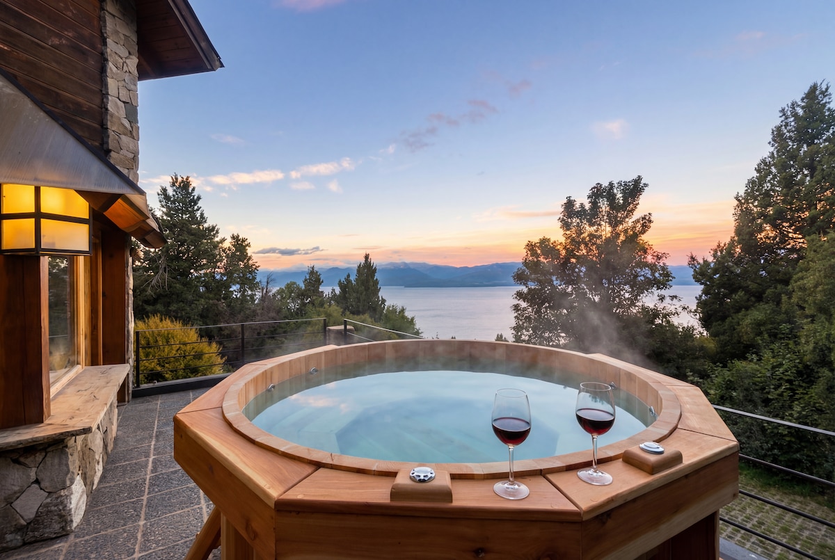 Hiša v Barilocheu s pogledom na jezero in hribi
