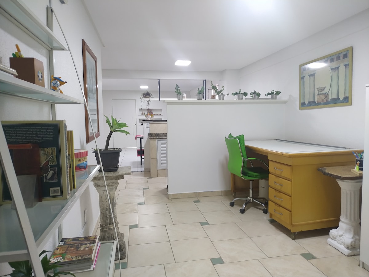 Sodobno podstrešje v središču Chapecója, popolno in udobno, idealno za pare, popotnike in poslovna ali prostočasna bivanja. Funkcionalno in dobro osvetljeno okolje s hitrim Wi-Fi-jem, klimatsko napravo, opremljeno kuhinjo in parkirnim mestom. Stavba z bazenom in fitnesom. Centralna lokacija, blizu restavracij, trgov, barov in storitev. Praktičnost, udobje in odlična izkušnja v mestu. Parkirišče je zunaj stavbe, eno ulico stran, stane 25 reajev na dan in ga je treba zahtevati.