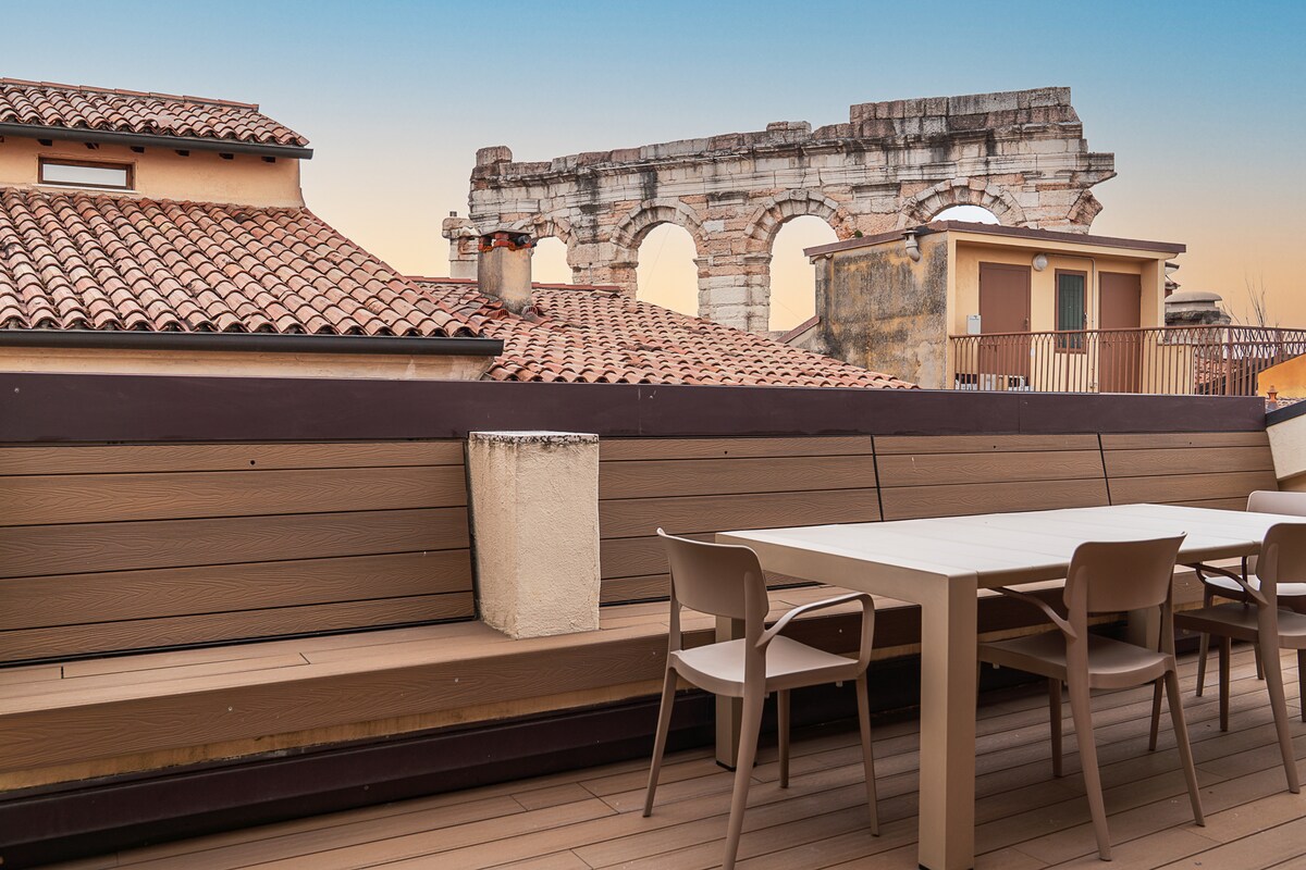 Luksuzno stanovanje v zgodovinskem središču mesta, le malo stran od Julijinega balkona. Apartma, ki je zgrajen v dveh nadstropjih z veliko sončno teraso, je osvetljen z deli peščenih steklenih tal. Kopalnica odprtega prostora z izpostavljeno prho in prosto stoječo kadjo. Starinska masivna hrastova deska služi kot miza v najsodobnejši kuhinji.
