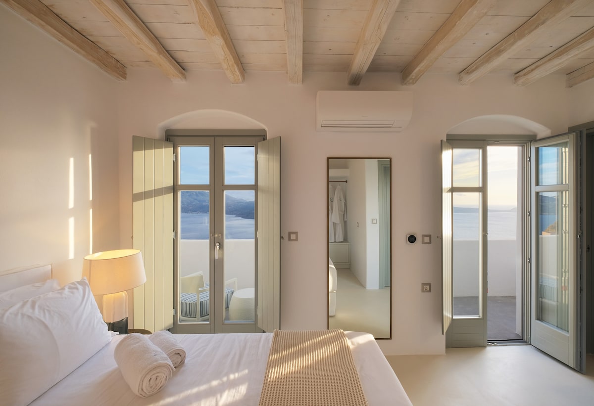 Naša tradicionalna cikladska hiša je stara sto let in je bila nekoč poletno letovišče za našo družino..Nahaja se na obali v slikoviti ribiški vasici Mandrakia na severni obali otoka.Naš dom se nahaja tik ob vodi. in za to ima panoramski pogled na morje. Z naše verande boste uživali v dih jemajoč pogled na Egejsko morje in imajo neposreden dostop do vode.Vstopite skozi vhodna vrata,pojdite navzdol po stopnicah v morje za potapljanje ali plavanje.