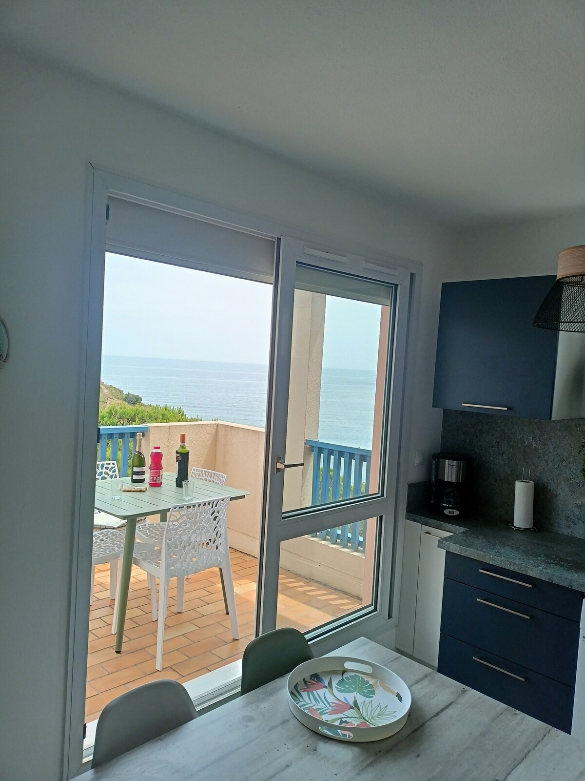 Cosy. Studio climatisé, résidence, piscine, solarium La vue depuis la terrasse privative et depuis le solarium est assez magique (Clocher/Baie/Littoral roussillonnais de Port Vendre jusqu'à Leucate) La balade à pied d'un petit quart d'heure qui vous conduira de la résidence au centre historique, en longeant le bord de mer, est un véritable enchantement. Restaurants, boutiques, plages et criques accessibles à pied. 2/4 couch. chambre "verrière" lit 140 + canapé lit 140.